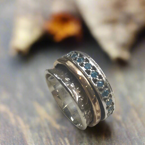 Blue Sapphires Fidget Ring - Cocktail Party.