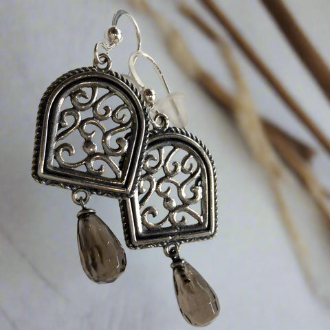 Dangle Smoky Quartz Drop Earrings - Rain Dance.