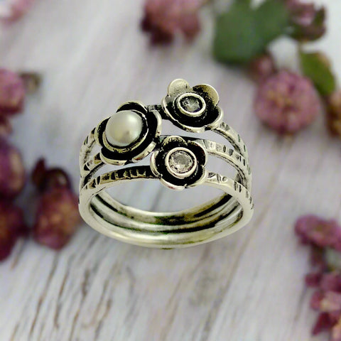 Pearl Silver Gold Floral Ring - Just flowers.
