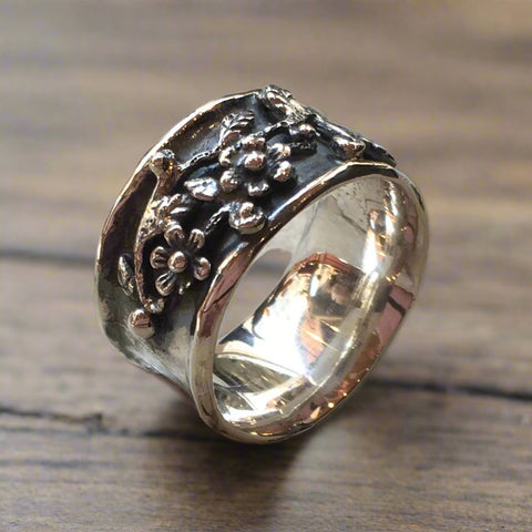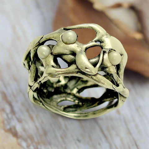 Silver Leaf Coin Pearl Ring - Silver Leaves.