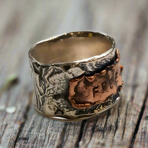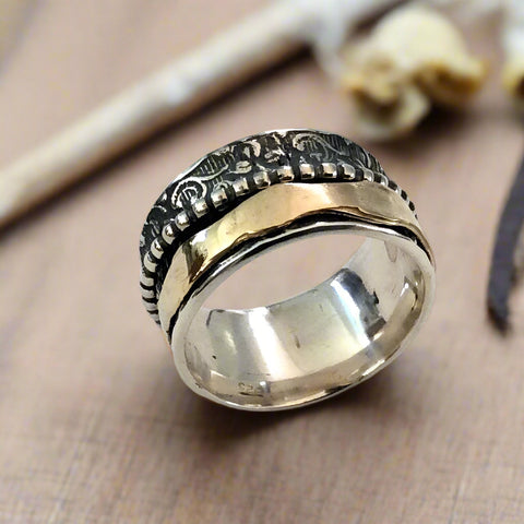 Silver Gold Spinner Meditation Ring - Under The Sky.