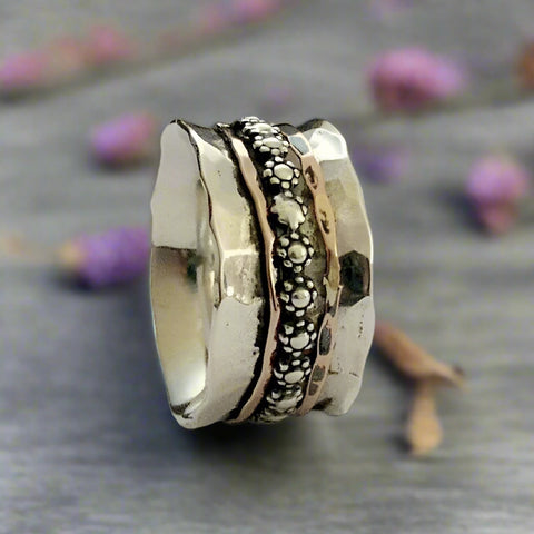 Silver Copper Spinner Ring - Sweetest Devotion.