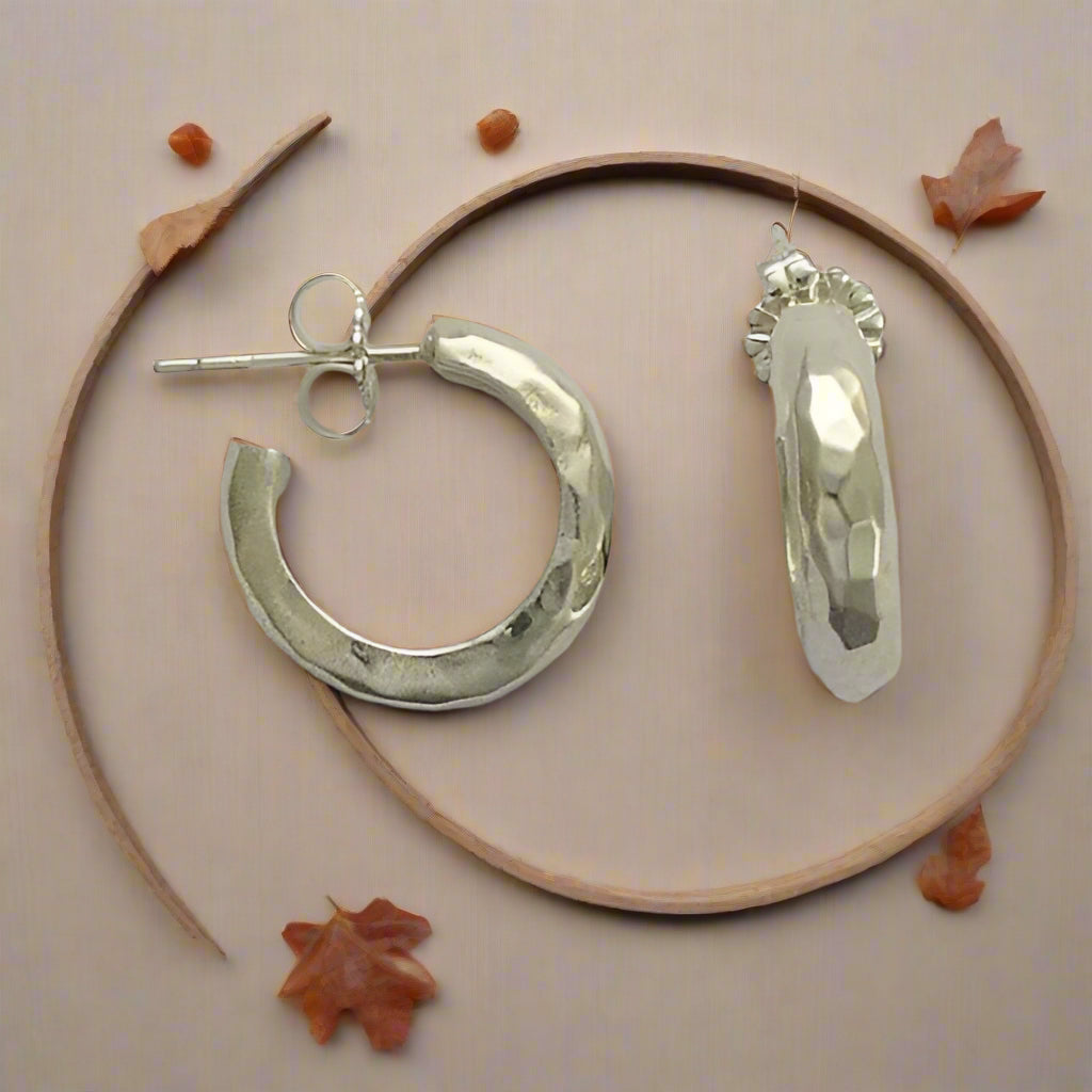 Hammered hoop Sterling Silver Earrings - Come with me .