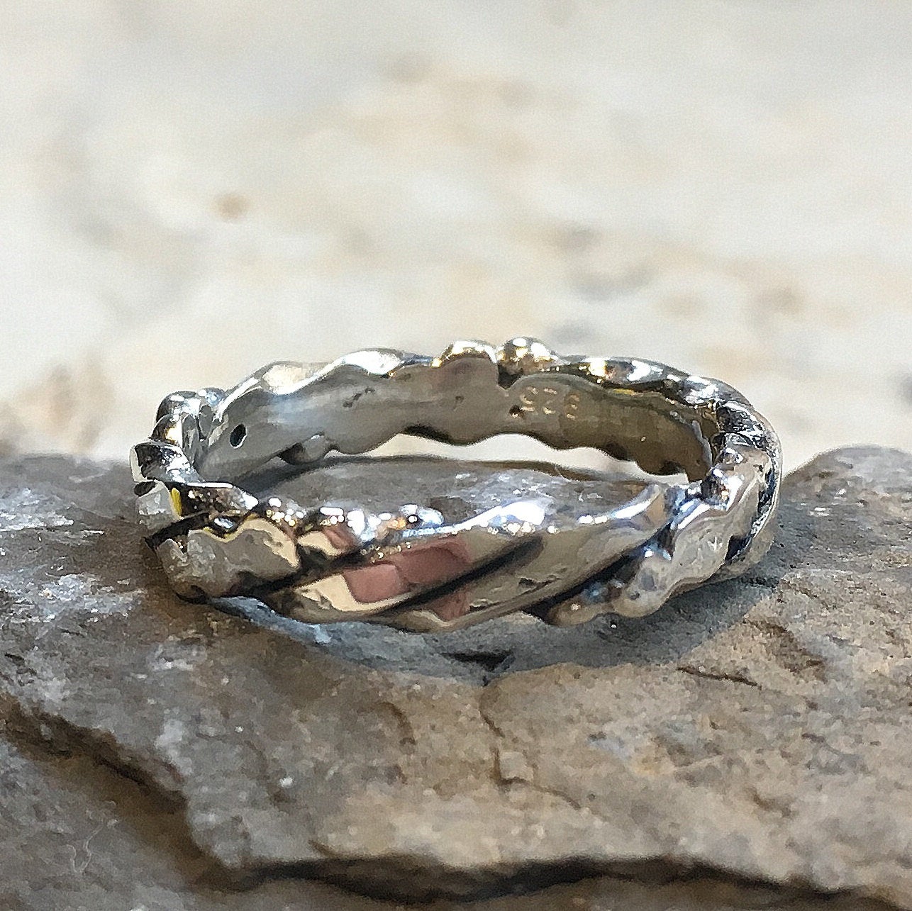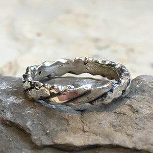 This is a simple sterling silver stacking ring. The band is twisted and organic. You can use it as a thumb ring and as a midi ring as well. R2461