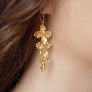 These botanical long leaf earrings are made from 14K gold leaves. EG2144.