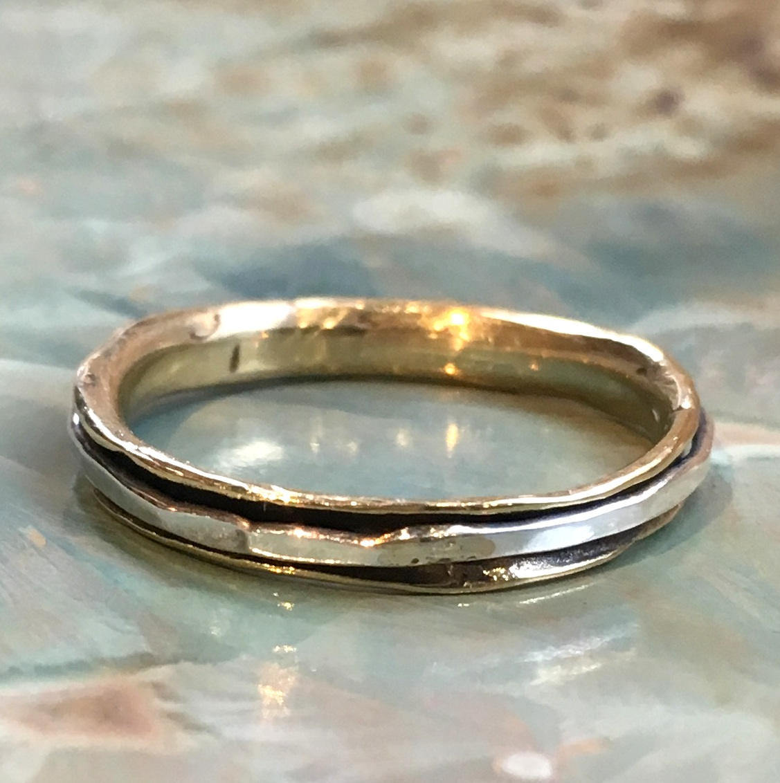 This is a simple silver and gold filled spinner ring. You can stack this pretty oxidised band. You can use it as a thumb ring and as a midi ring as well. (R2530)