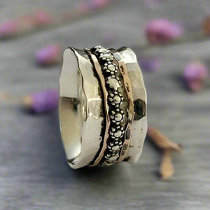 Spinners ring, boho ring, Unique wedding ring, Floral band, stacking bands, silver spinner ring, meditation ring - You'll always know R1019H