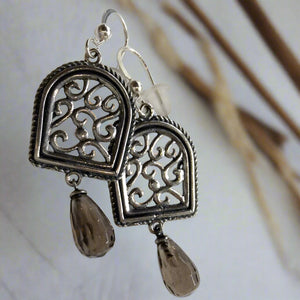 sterling silver oxidized earrings with Smokey quartz drop stones . Great pair for every day. The earrings are not heavy and very comfortable to wear. (code - E8000).